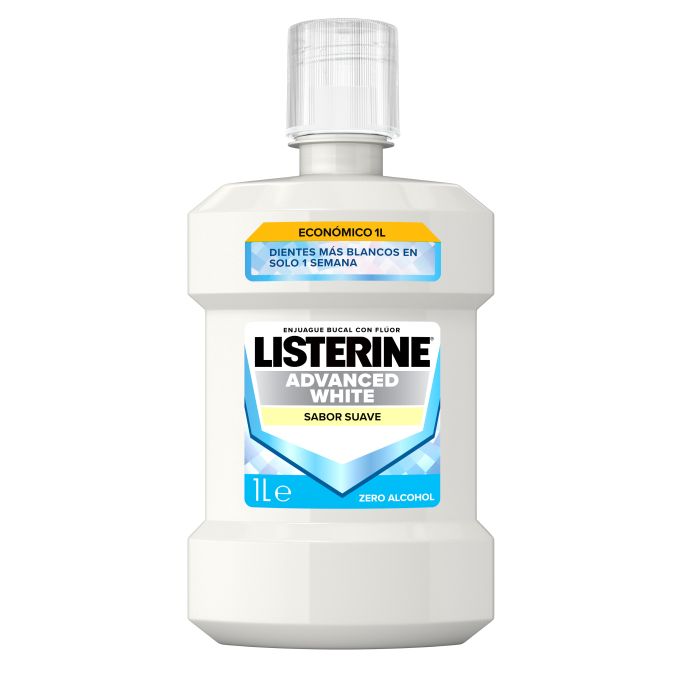 El enjuague bucal LISTERINE Advanced White Sabor suave es una solución clínicamente probada y sin alcohol que te ayuda a lograr unos dientes más blancos en tan solo 1 semana. Usado dos veces al día, este enjuague bucal ofrece una solución completa para mejorar la apariencia de los dientes.