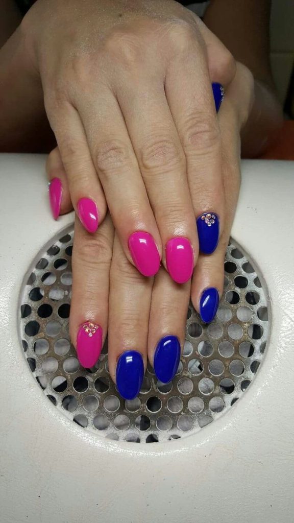 Como combinar azul y fucsia en tus uñas: Diseño con tonos alternados