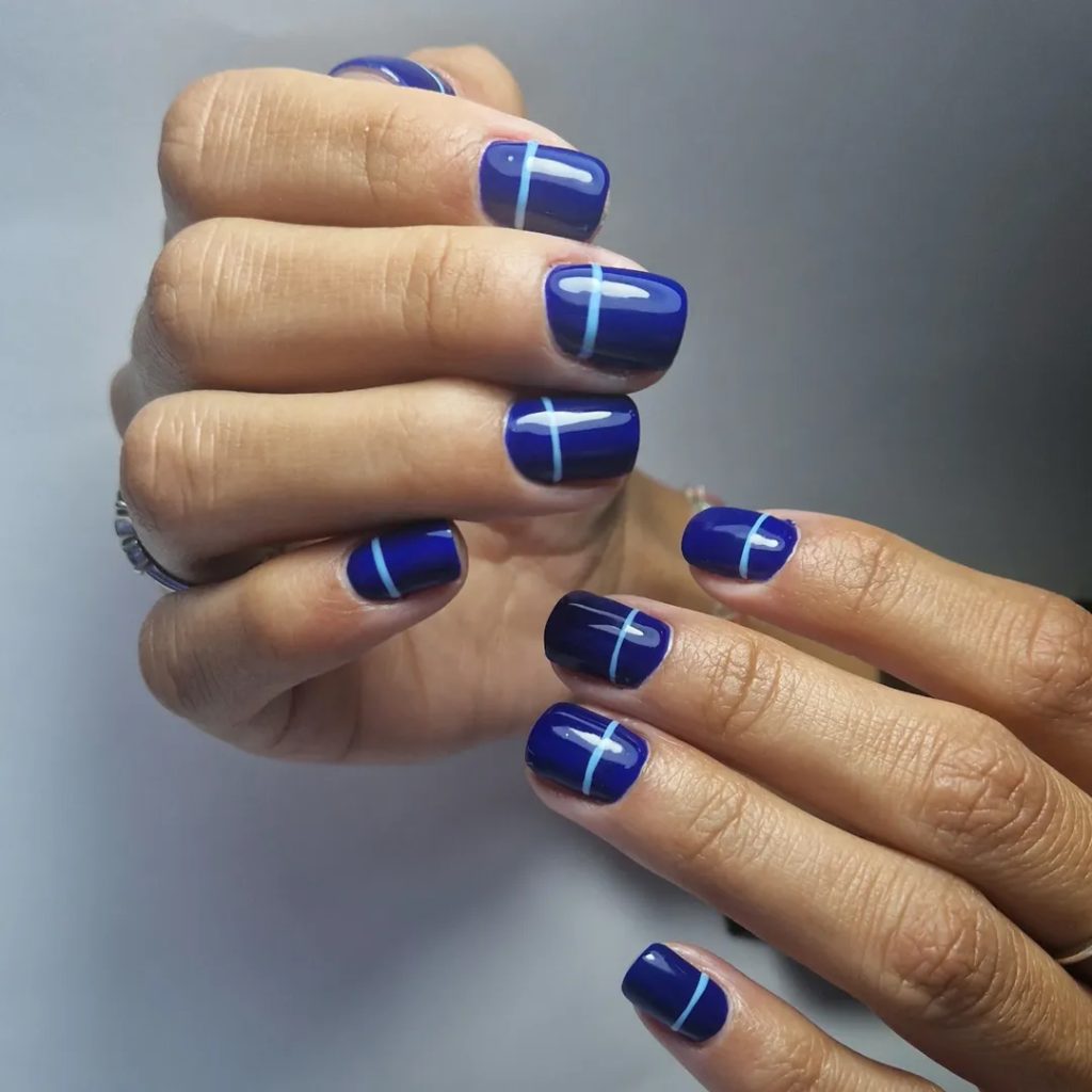 Un pequeño detalle como esta línea azul turquesa en tus uñas azul eléctrico puede marcar la diferencia. Es sin duda un color claro que combina a la perfección con este otro azul eléctrico y fuerte. Pero lo mejor de una manicura como esta es la originalidad. Algo tan simple como una línea azul turquesa, le dará a tu manicura un toque diferente. Sin duda, un sello de personalidad.