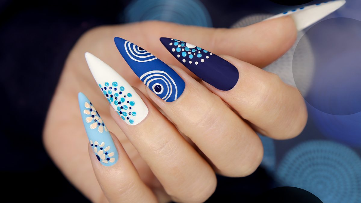 Juega con puntos y líneas para crear un diseño abstracto y moderno en la punta de las uñas.