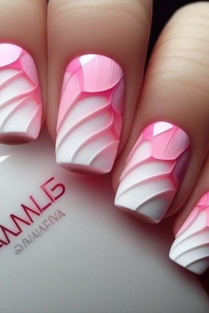 Ideas para uñas rosas y blancas: Diseño de mármol