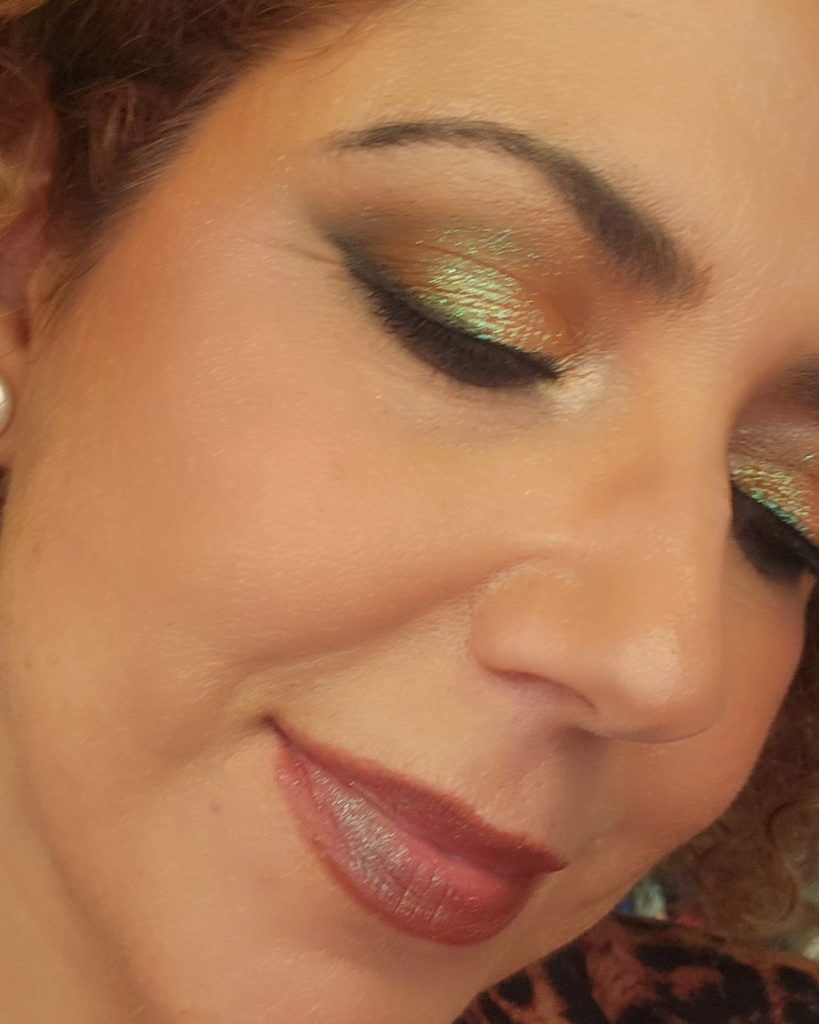 Esta opción en tonos marrones y dorados con ese toque verde brillante es ideal para invitadas de bodas y celebraciones de mañana. Los tonos más oscuros los dejamos para las últimas horas del día, pero este maquillaje es perfecto para el día. Los toques de verde y dorado mezclados aportan luz a la mirada y, ¡mucho brillo y alegría!