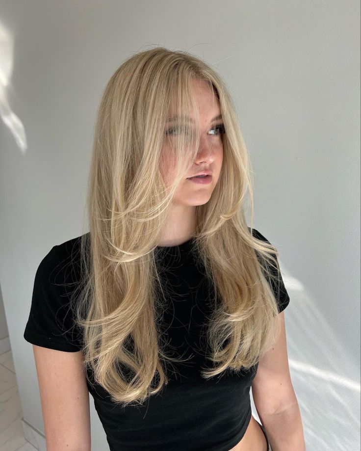Las capas largas bien distribuidas crean movimiento y volumen en el cabello fino, especialmente si se peinan con ondas suaves.