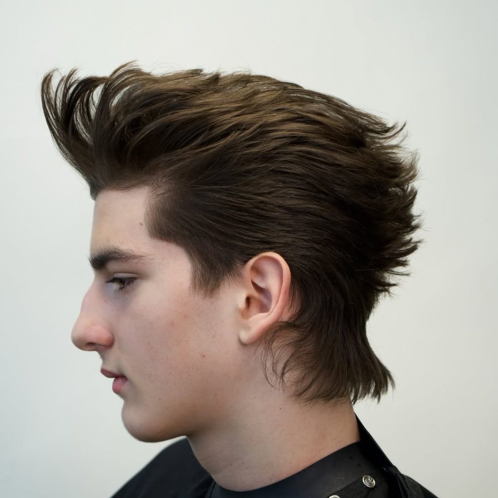 Esta variante del Pompadour más clásico y vintage puede ser genial dentro de las opciones de cortes de pelo de hombre para la graduación. Teniendo en cuenta que le aporta al corte clásico un giro de tuerca con cierta frescura, es genial para jóvenes y le añade un toque festivo y divertido.