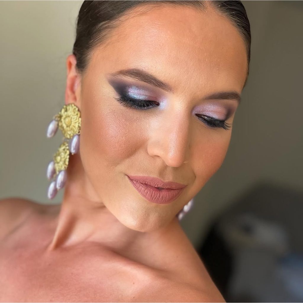 Este ligero toque morado en los ojos quizás no es tan típico en la Feria de Abril, pero dependiendo de los accesorios o vestido que lleves, puede ser ideal en tu caso. De hecho queda genial con joyas que llevan perlas, como en este caso, ya que las perlas tienen ese toque azulado tan especial que nos recuerda a la luna. Si llevas un vestido blanco, azulado o de tonos que queden bien con este tipo de sombras, ¡no lo dudes!