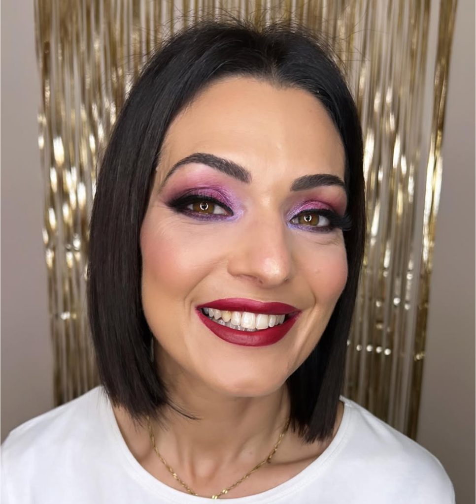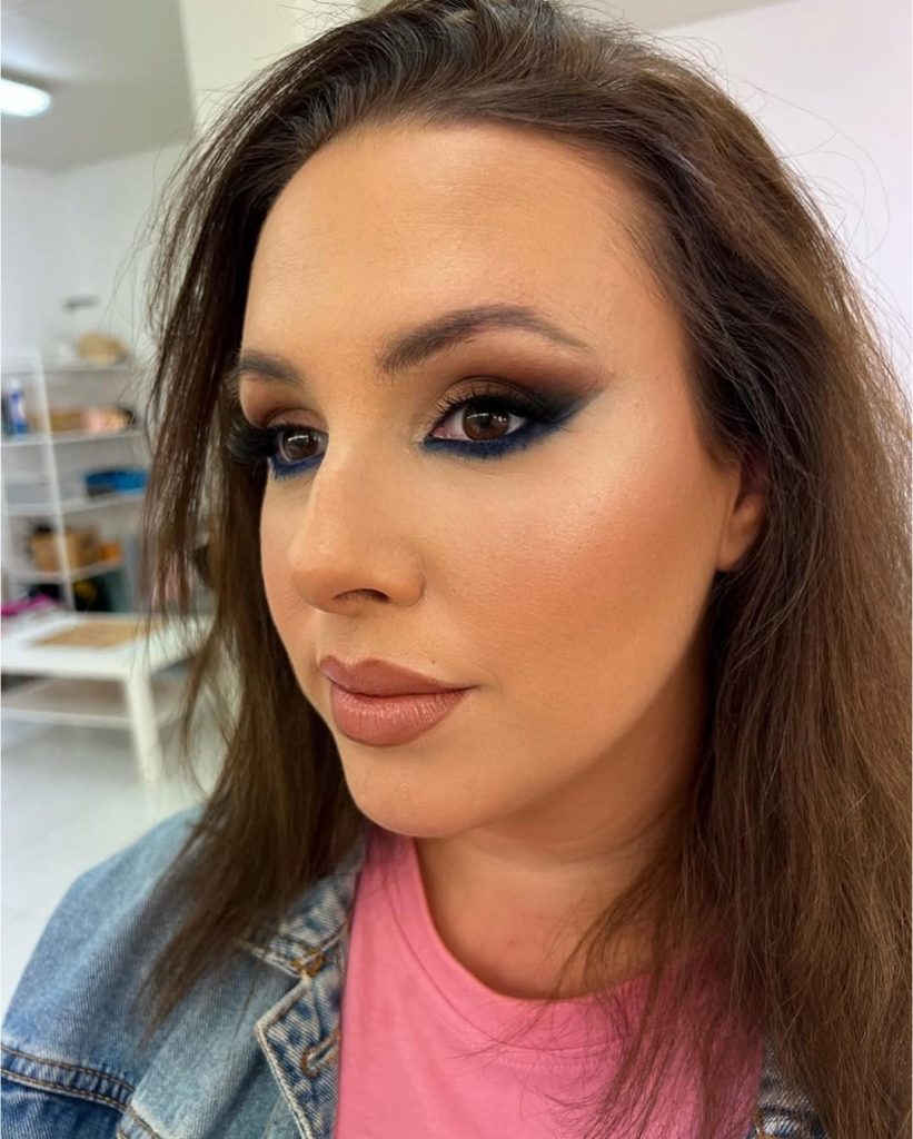 En un caso como este, es una genial idea poner la línea de debajo del ojo en azul. Sobre todo si los tonos del vestido van con esta estética. Y es que, ya que hacemos ese eyeliner para destacar el ojo y su expresividad, ¿por qué no añadir un toque de color? Siempre está bien, sobre todo en celebraciones de día, ya que en las de noche, este colorido se puede aplicar a la sombra completa en el párpado móvil.