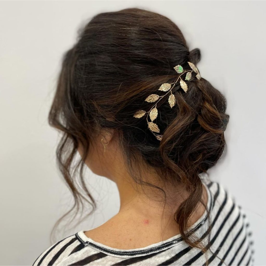 ¿Joyas en el pelo? Con peinados para una boda de día, es una opción genial. Joyas y complementos como este pueden darle un toque totalmente diferente a un moño así. Si eliges esta opción, lo mejor será que el vestido sea clásico y sencillo. En cuanto al maquillaje y los complementos, será aconsejable medir también que no sean demasiado ostentosos. Recuerda… en la proporción perfecta está la fórmula de la elegancia.