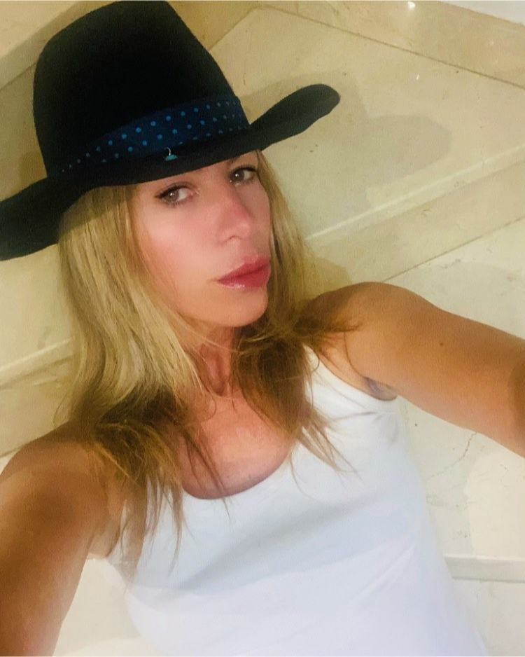 Un sombrero de cowboy como este, queda perfecto con una melena lisa y larga como en este caso. Este es uno de los peinados con gorro que más favorece en este caso, porque estos sombreros son rígidos y por ello, es imposible llevarlos con coleta, moño o incluso con un medio recogido.