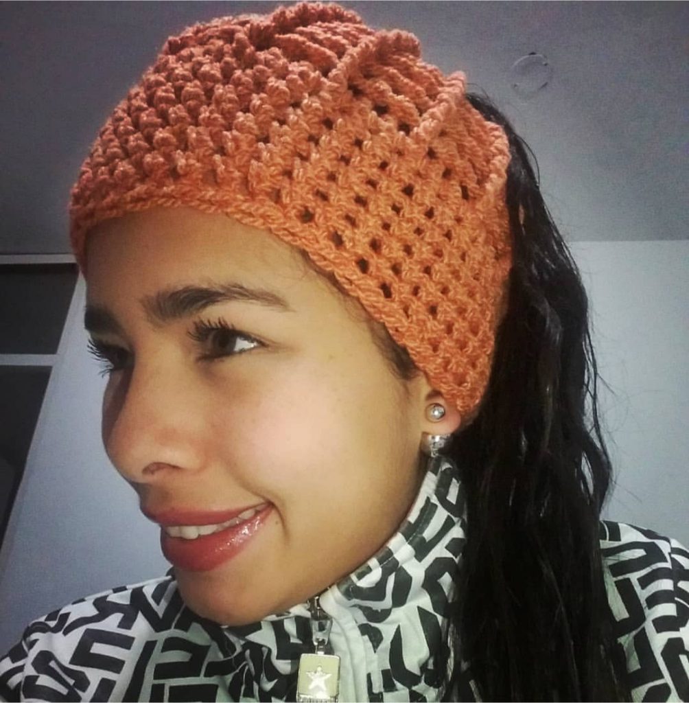 Este gorro tipo diadema de crochet es genial para llevar el pelo con una coleta alta. De hecho, están hechos para funcionar como una especie de diadema. Lo mejor es que son calentitos para el invierno y, a la vez, cómodos. Calientan las orejas y la cabeza mientras permiten un look casual y favorecedor al mismo tiempo.