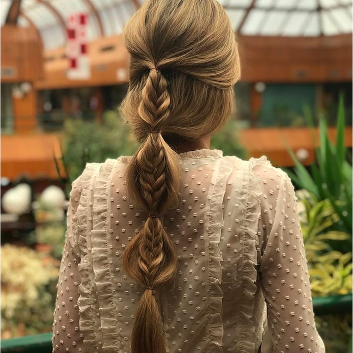 Esta coleta hecha de trenzas es de lo más bohemio y elegante que puedes llevar si tienes el pelo largo y te apetece este estilo. Además, también puede quedar genial con looks dulces y románticos. Con una camisa abullonada, una falda larga o unos jeans, pero también con esos vestidos floridos tan femeninos y favorecedores. No obstante, ten en cuenta que puedes jugar con los looks y combinarla con un look casual o de evento, para que eleve con un toque especial.