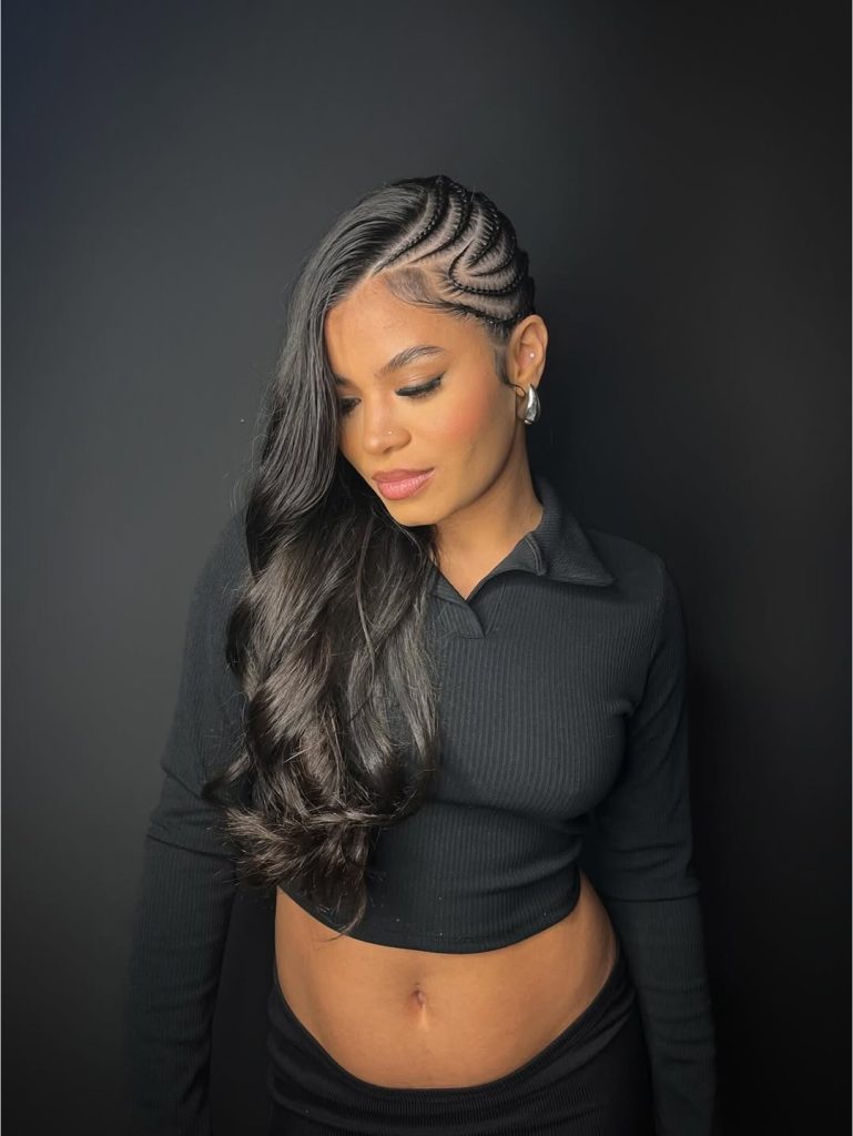 Este peinado es una mezcla entre un look exótico y uno de diva. Es decir, una opción de lo más especial y que te aportará mucha personalidad, ya que no suele ser muy común, como si lo son algunos que incluyen trenzas de otro modo. Prueba con vestidos ceñidos de un solo color y con looks casual.