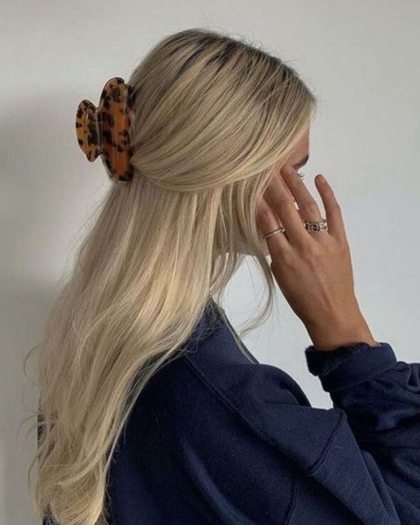 - Pinzas grandes: que te cogen todo el pelo y con las que puedes retirarte gran cantidad del pelo de la cara. Estas también sirven para decorar coletas. Son precisamente las que han puesto de moda las divas del trap y las que dan un toque desenfadado y urbano a tus looks.