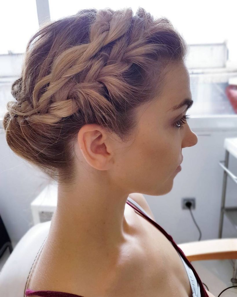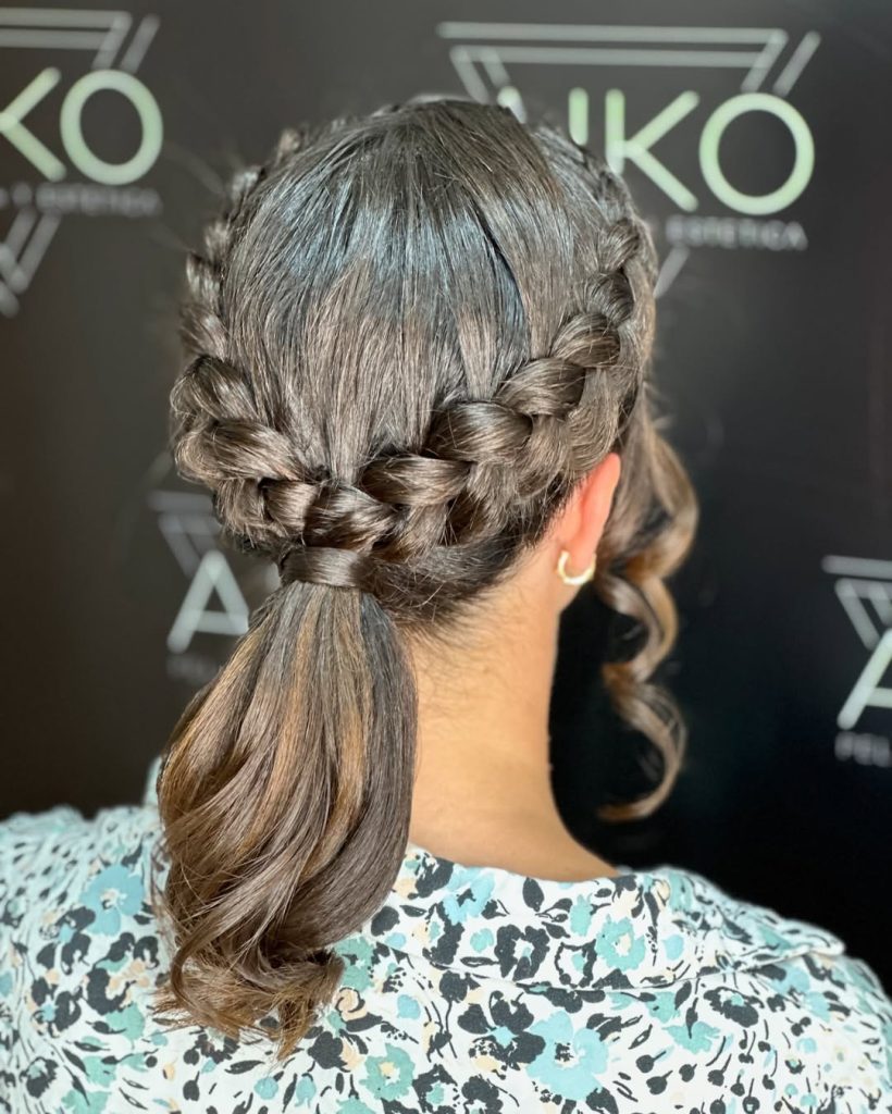 Si lo que buscas es un peinado elegante entre las opciones de recogidos con trenzas que te damos, puede que este sea uno de los mejores. Es una opción elegante y al mismo tiempo sencilla y clásica. Recuerda casi a esas diosas de la antigua Grecia que lucían bellísimas con una simple túnica blanca y algún pequeño detalle como joyas doradas. De hecho, si tienes un evento o te apetece un look como este, es el peinado ideal para ello. También lo puedes llevar con un vestido liso y un look sobrio para darle una nota de dulzura, sin salirte de la estética completamente.