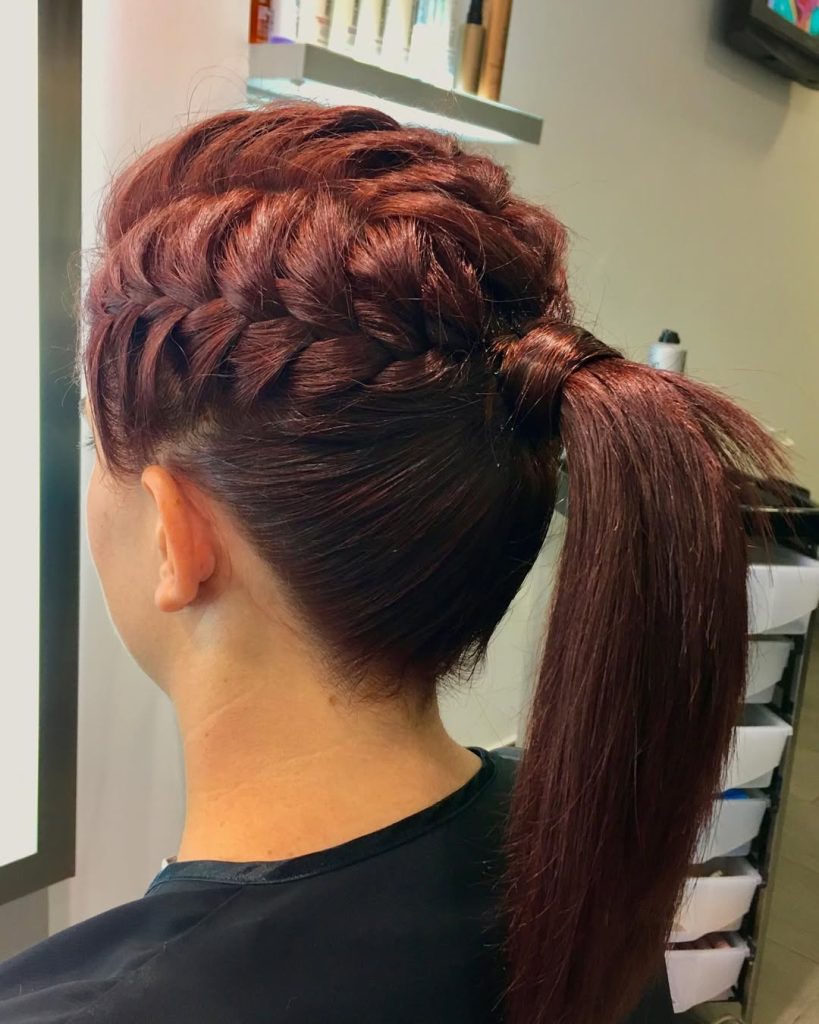 Para terminar, vamos a ver una opción mucho más desenfadada y bastante alternativa. Una coleta alta con estas trenzas en la parte alta de la cabeza, puede ser una de las mejores opciones si lo que buscas es confort y un look deportivo. De hecho, incluso tiene un toque de actitud guerrera o incluso ancestral. Dependiendo de los looks con los que combines un peinado así, puedes jugar con efectos como estos. Incluso puedes variar entre un par de looks para no encasillarte tan fácilmente.