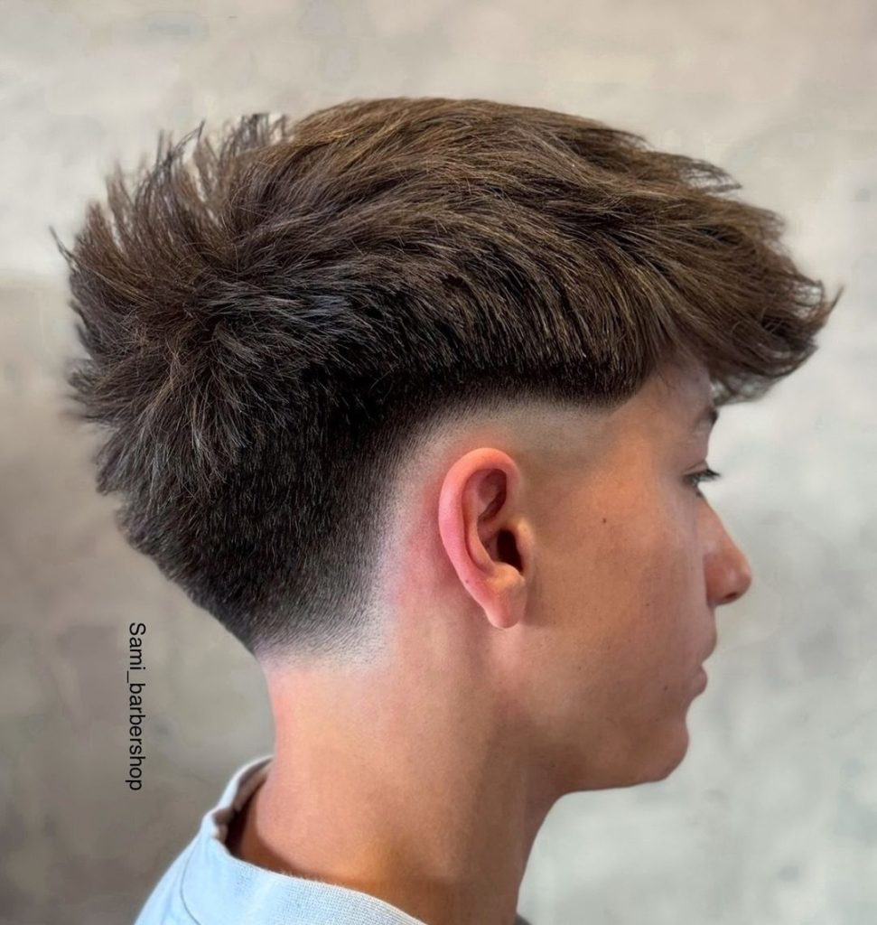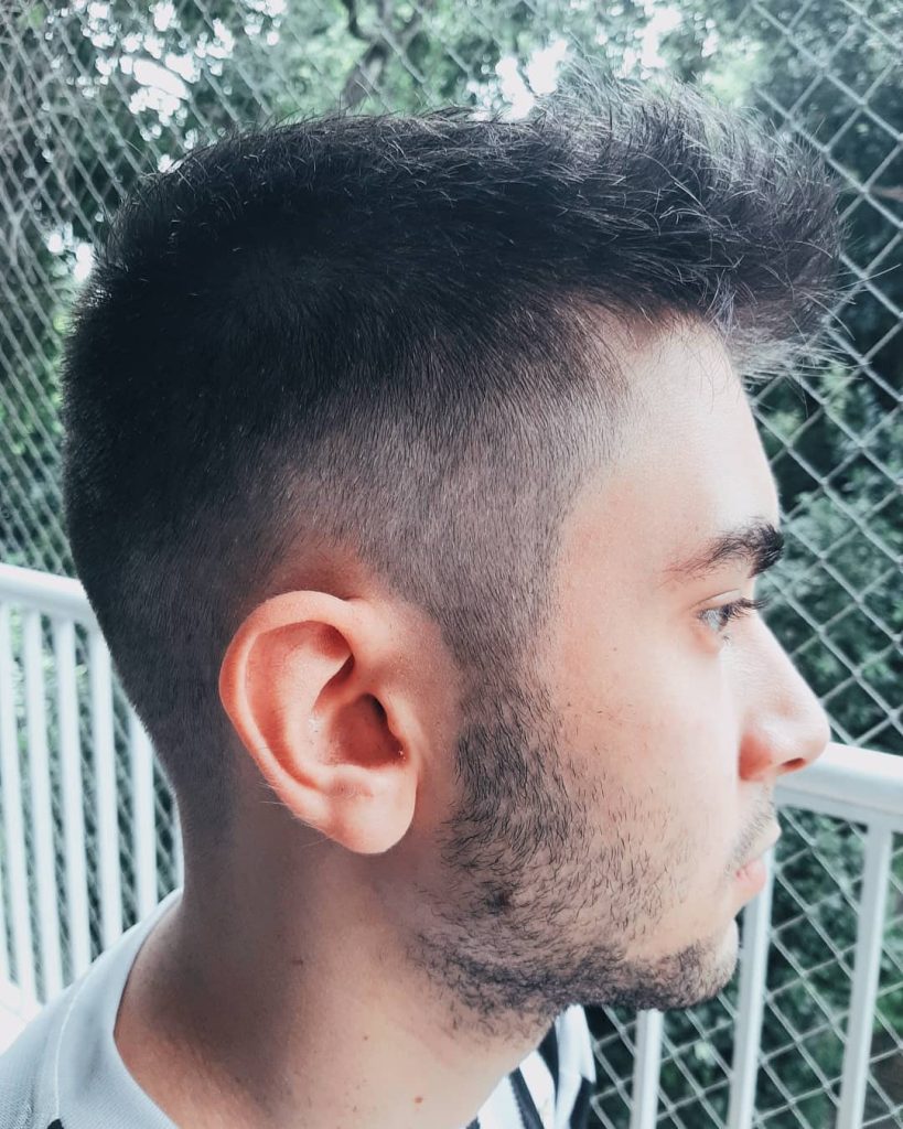 El high fade le da un toque muy actual a cualquier look. Se ha puesto sobre todo de moda desde que el trap y sus estéticas urbanas han tomado las ciudades y casi todos los rincones del mundo. Nos gusta porque es tendencia, pero también porque aporta un toque de fuerza y personalidad a quienes lo escogen como corte de pelo. Es perfecto para los hombres de 50 que prefieren seguir las últimas tendencias o los que se identifican con este estilo urbano y tan característico.
