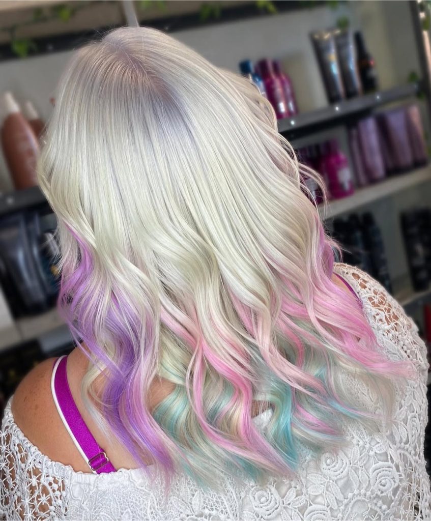 Si lo que quieres es un toque sutil inspirado en la ficción, puedes optar por teñirte las puntas sobre una base decolorada y muy rubia o casi blanca como en este caso. Las puntas de los colores que representan y visten a ambas brujas, le darán un toque inconfundible…