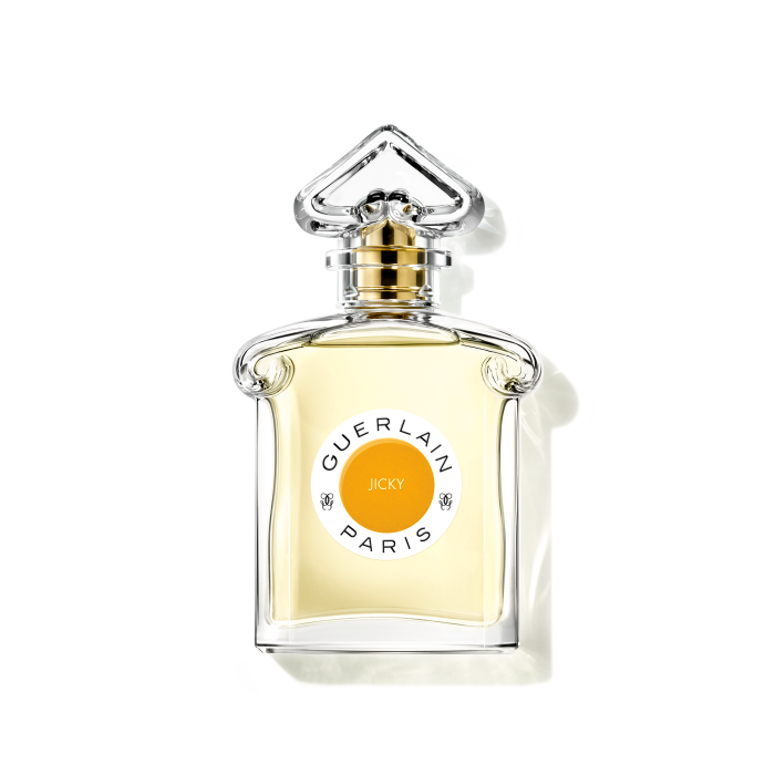 Jicky se presenta en el mítico frasco de ""corazón invertido"". Este frasco fue diseñado en 1912 por George Chevalier como la quintaesencia de la feminidad: una sutil combinación de curvas y líneas, contornos redondeados y armoniosos, y un tapón tallado con forma de corazón invertido.