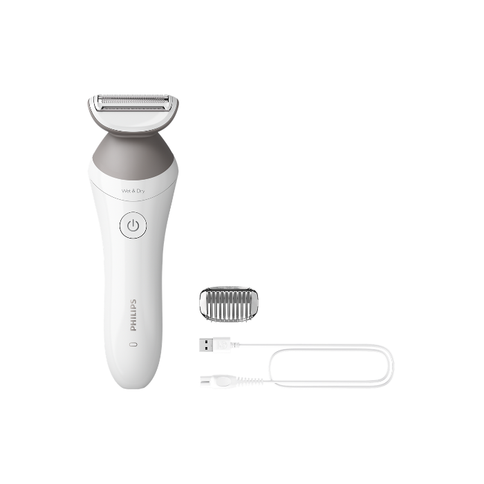 Rasuradora femenina con lámina individual flotante para un afeitado corporal rápido, cómodo y sin irritaciones. Uso en seco y en húmedo. Cuchilla hipoalergénica. Con batería y autonomía hasta 40 minutos. Incluye 4 accesorios: peine guía, cabezal de contacto óptimo, cabezal deslizado suave y guante exfoliante. Ideal para usar antes del tratamiento con Lumea o para disfrutar de un rasurado fácil, rápido y seguro.