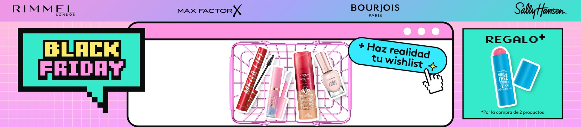 Disfruta de esta promoción exclusiva de tus marcas favoritas, como Rimmel London, Max Factor, Bourjois y Sally Hansen, y vive el Black Friday más beauty del año. No dejes escapar esta oportunidad y añade un toque de estilo a tus imprescindibles de maquillaje.