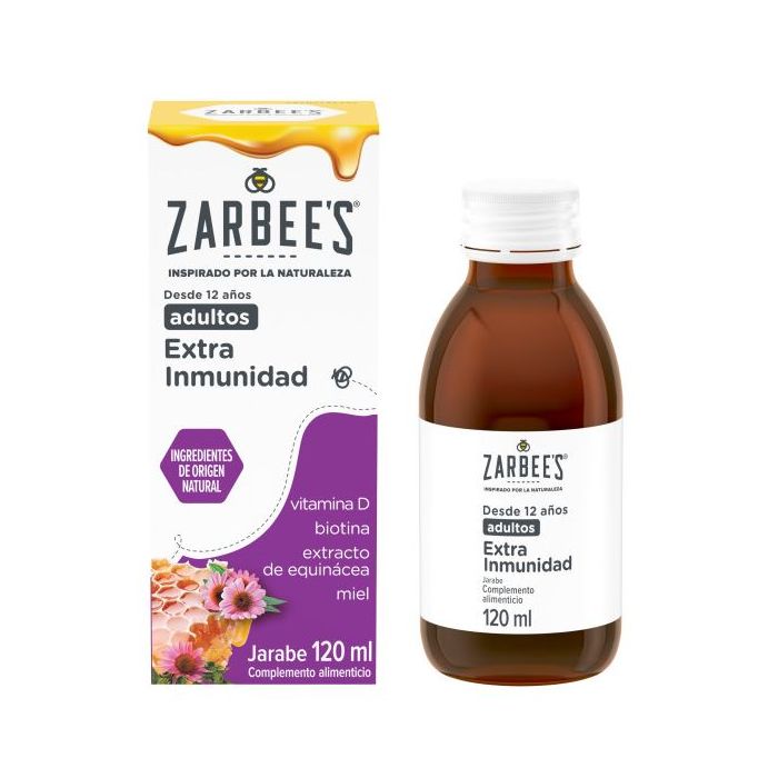 Zarbee's jarabe extra inmunidad es un complemento alimenticio indicado para mejorar el sistema inmune de los adultos.