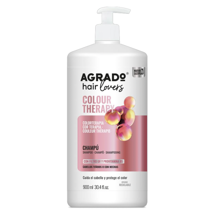 AGRADO presenta su Hair Lovers Colour Therapy Champú, un producto diseñado para el cuidado diario del cabello tratado químicamente. El Hair Lovers Colour Therapy Champú de AGRADO está formulado específicamente para proteger el color en cabellos teñidos o con mechas.