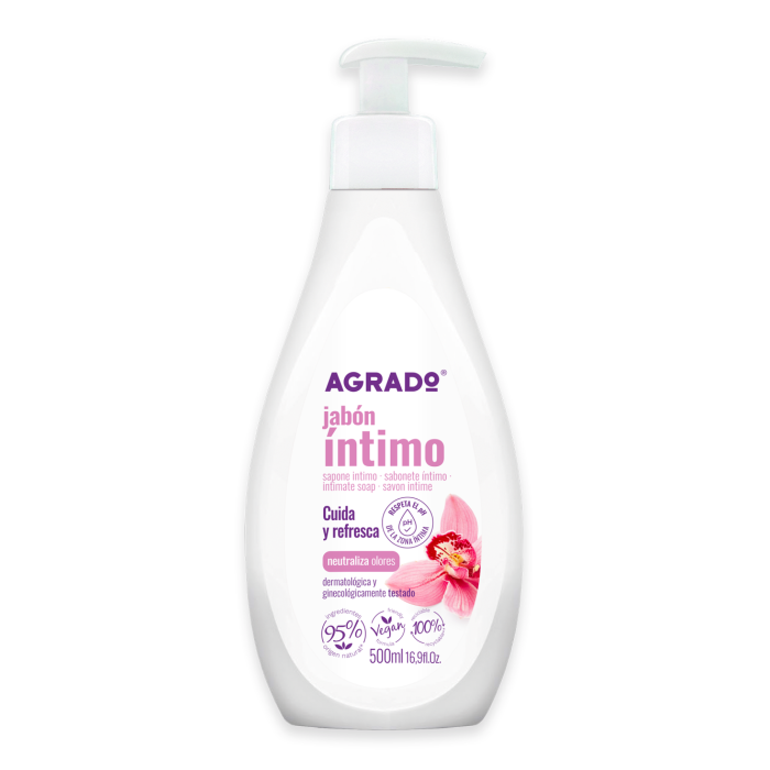 El jabón íntimo AGRADO, formulado con agentes limpiadores suaves y extracto del árbol de té permite utilizarlo a diario respetando hasta las pieles más sensibles y el pH fisiológico natural de la zona íntima.