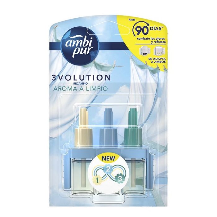 El recambio para ambientadores eléctricos Ambi Pur 3Volution con tecnología Odourclear elimina los olores persistentes.