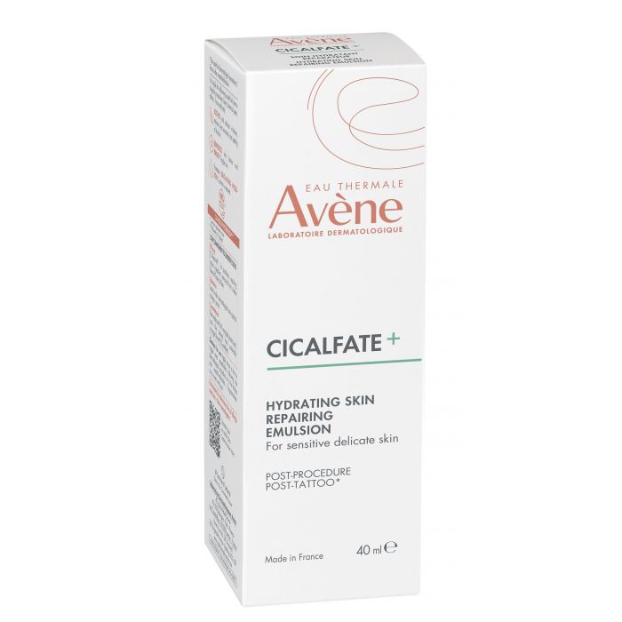 AVÈNE CICALFATE EMULSIÓN REPARADORA POST-ACTO DERMATOLÓGICO SUPERFICIAL: Es una emulsión ligera con una textura no grasa que se aplica fácilmente, incluso en la piel irritada por un acto dermatológico. Transparente después de su aplicación.