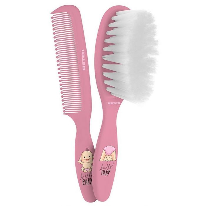 BETER Set Peine y Cepillo para Bebé diseñados con el mango largo para una mayor manejabilidad y confort.
