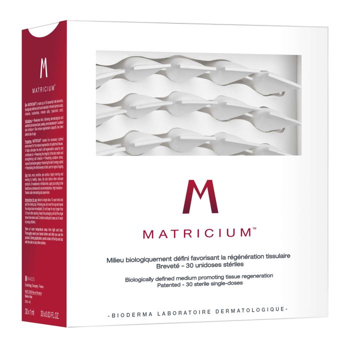 Matricium de Bioderma es una innovación avanzada en dermatología. No es un cosmético más: Matricium es el primer cuidado cutáneo tópico con categoría de dispositivo médico (clase II a) lo cual certifica su acción probada en la dermis, que reproduce el medio de vida de las células de la piel. Es una patente Mundial.