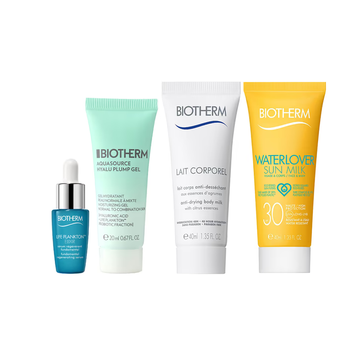 La leche solar para rostro y cuerpo Biotherm Waterlover combina una protección sin concesiones contra los rayos UVB, UVA y UVA prolongados con filtros ecológicos y 95% biodegradables. La fórmula, enriquecida con Life Plankton, tiene una textura agradable y de rápida absorción que no deja rayas blancas.
