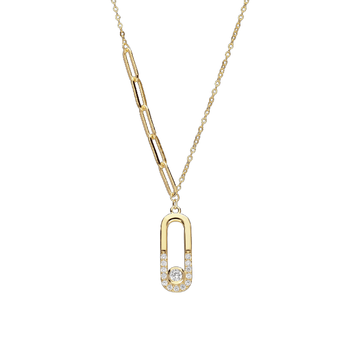 El Collar Anchor combina pequeños cristales con la calidad de la plata bañada en oro de 18 quilates, ofreciendo una propuesta sobria para complementar diferentes estilos.