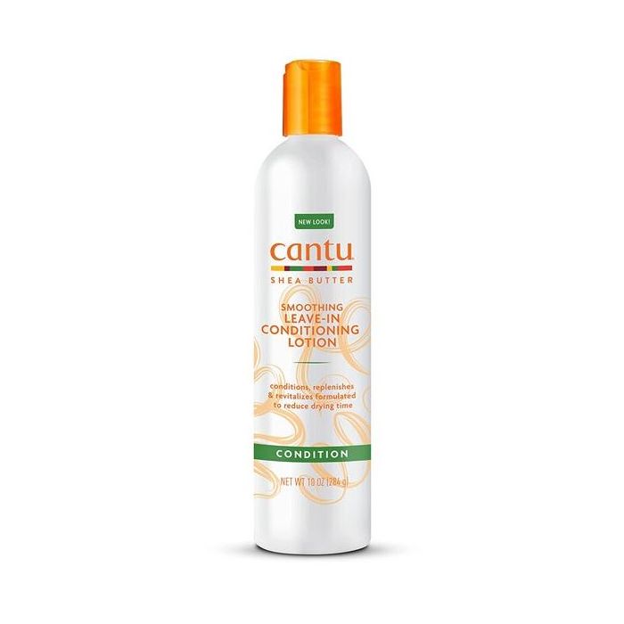 Consigue un cabello más fuerte y saludable con un brillo espectacular con CANTU Shea Butter Acondicionador sin aclarado Smoothing Leave-In Conditioner Lotion.