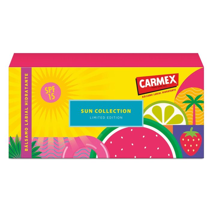 Caja Edición Limitada Carmex "Sun Collection". Tres bálsamos labiales hidratantes con tres formatos y tres sabores diferentes para mantener los labios siempre hidratados y protegidos. Todos ello cuentan con SPF15. Presume de sonrisa sin renunciar a nada. Para gustos, Carmex.