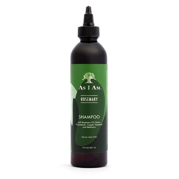 AS I AM Champú de Romero Anticaída es un producto diseñado para fortalecer el cabello y cuidar el cuero cabelludo, destacando la calidad de la marca AS I AM.