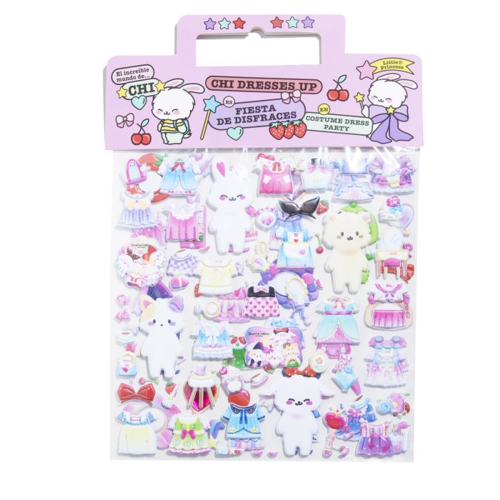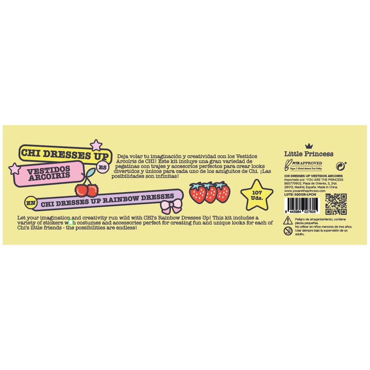 Deja volar tu imaginación y creatividad con las pegatinas Dresses Up de CHI. Este kit incluye una gran variedad de pegatinas con trajes y accesorios perfectos para crear looks divertidos y únicos para cada uno de los amiguitos de Chi. ¡Las posibilidades son infinitas!