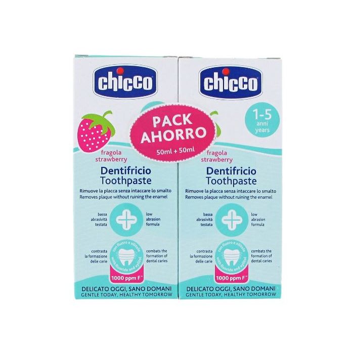 CHICCO Dentífrico con Fluor Sabor Fresa 12M+ combate eficazmente la formación de caries dental, gracias a su contenido de fluoruro de sodio (1000 ppm F-) y xilitol.