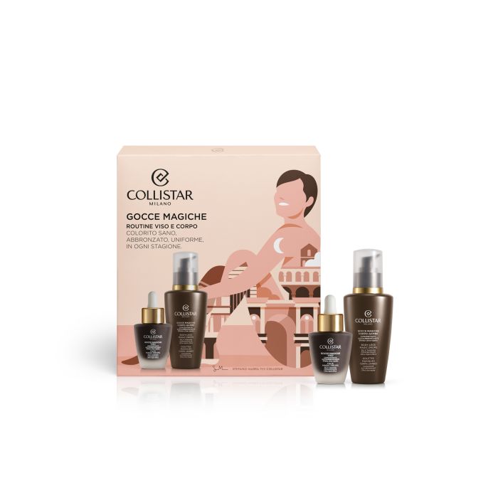 Gracias a COLLISTAR, el Estuche Gotas Mágicas Autobronceadoras Rostro y Cuerpo se convierte en una opción práctica y eficaz para mantener un color uniforme durante todo el año.
