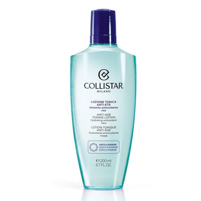 Loción Tónico Antiedad de Collistar  contiene un compuesto vitamínico, vitaminas A, E y B5 con ácido hialurónico, escina y manteca de karité, que nutren la piel y contrarrestan la aparición de los signos del envejecimiento.