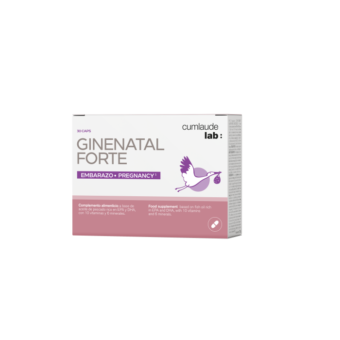 CUMLAUDE LAB presenta el Ginenatal Forte Cápsulas, un suplemento alimenticio diseñado para complementar la dieta de mujeres embarazadas durante el embarazo, el periodo previo y la lactancia.