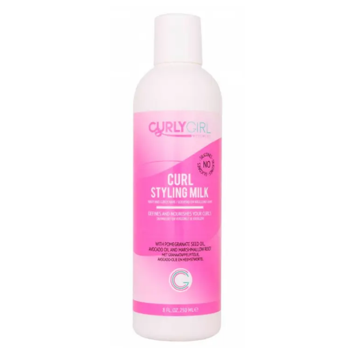CURLY GIRL Curl Styling Milk es una leche de peinado que se destaca por su fórmula libre de siliconas, aceites minerales y parabenos, lo que la hace adecuada para el método Curly Girl.