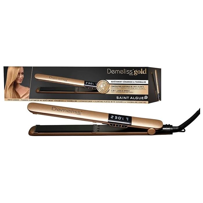 • ALISADO IMPECABLE: La plancha alisadora Demeliss GOLD de Saint Algue proporciona un alisado duradero y de calidad profesional. Las placas flotantes de cerámica y turmalina distribuyen el calor uniformemente. Protegen el cabello y respetan la fibra capilar, dejándolo suave y brillante. Las láminas ultrafinas de 25x120 mm proporcionan un alisado impecable desde la raíz.
