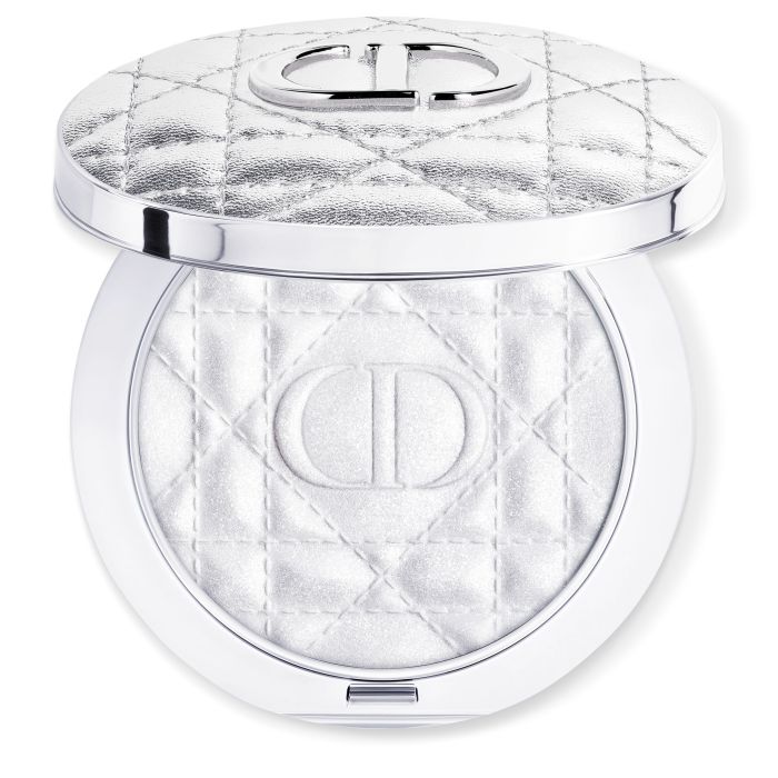 Forever Glow Luminizer de DIOR está disponible en diferentes tonalidades y se presenta en un elegante estuche couture plateado, adornado con las icónicas iniciales "CD".