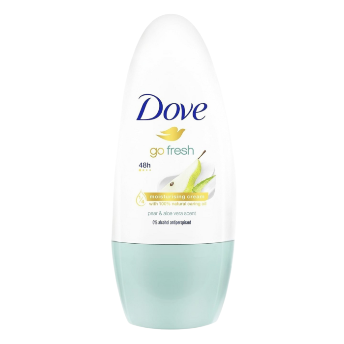Dove Go Fresh Pear & Aloe Vera Roll-On ofrece 48 horas de protección contra el sudor y el mal olor, combinando eficacia con cuidado delicado para la piel de las axilas. Su fórmula enriquecida con ¼ de crema hidratante, sin alcohol, ayuda a reducir la irritación tras el afeitado y deja la piel suave y confortable.