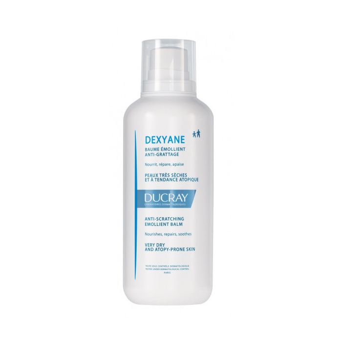 Dexyane Bálsamo Emoliente Antiraspado de Ducray nutre al mismo tiempo que repara y calma la piel muy seca con tendencia atópica. Su fórmula contiene varios ingredientes activos que hidratan y suavizan, reduciendo así la necesidad de rascarse.