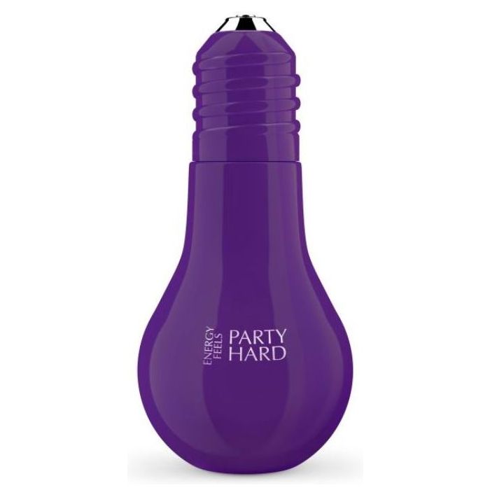El envase es una destacable bombilla morada que destaca con luz propia. ¡Que no pare la fiesta con Party Hard!