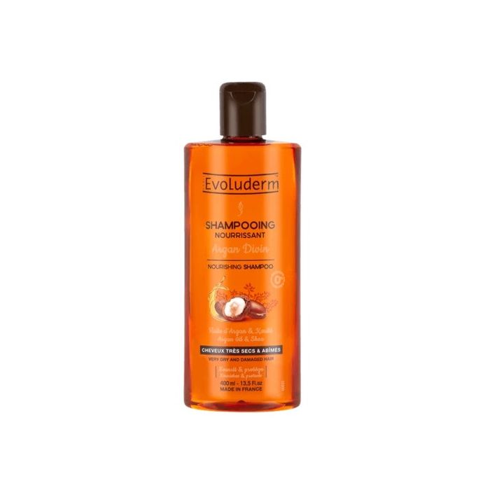 Champú Nutritivo Argan Divin de Evoluderm es un champú nutritivo, sin silicona, y específicamente formulado para cuidar el cabello muy seco y dañado.