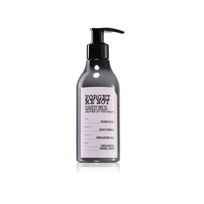 Forget Me Not First Kiss Sérum Corporal está formulado para el cuidado diario de la piel, con una composición que busca favorecer la regeneración cutánea mediante ingredientes seleccionados por FARMONA.