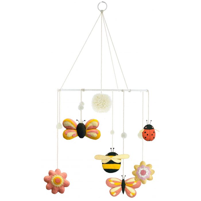 Con dos mariposas, dos abejas, flores y una colmena, este móvil sería una maravillosa adición al dormitorio de su hijo.