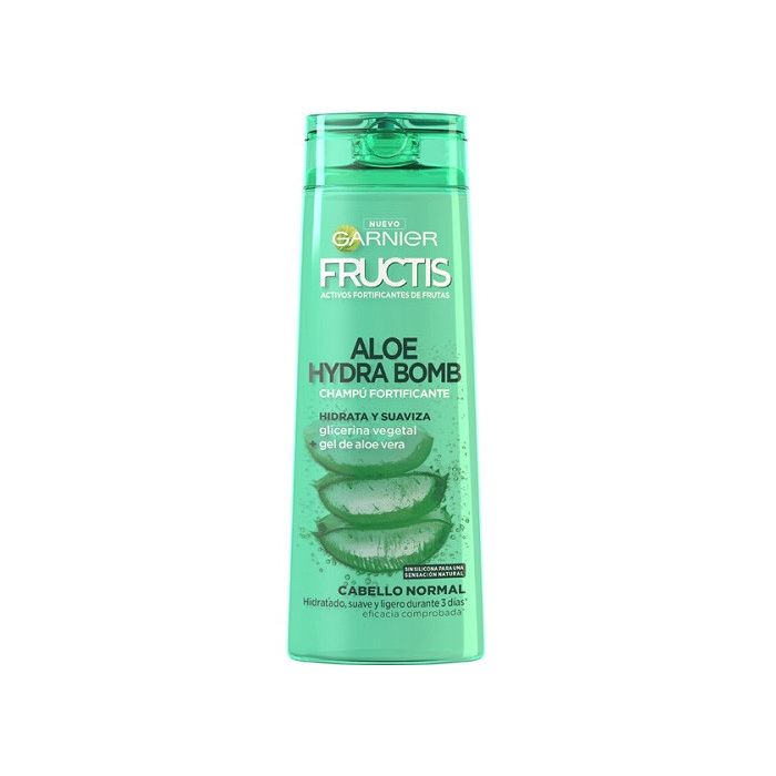 Champú Aloe Hydra Bomb de Fructis es un champú que limpia a la vez que fortalece el cabello desde la raíz. Enriquecido con Aloe Vera y Glicerina Vegetal, también se encarga de mantener el cabello hidratado, suave y ligero durante 3 días. Recomendado para cabello normal, largo.